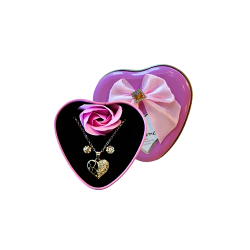 Set de regalo que incluye alajero con accesorios y jabón aromático en forma de rosa.