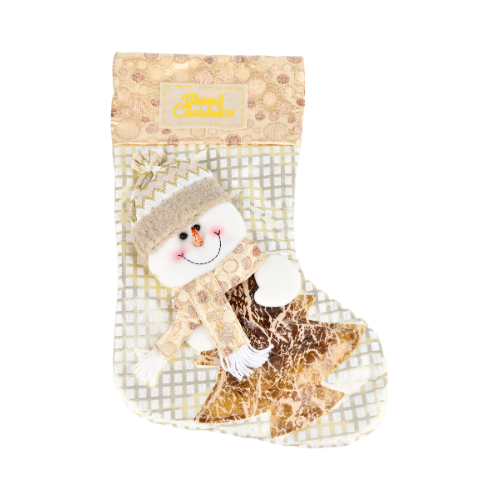 Bota navideña de tela con detalles festivos, ideal para colgar y llenar de sorpresitas.