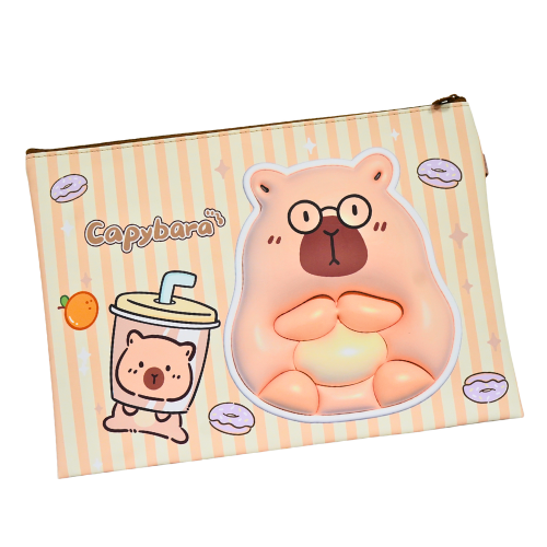 Carpeta flexible para hojas, ilustrada con capibaras.