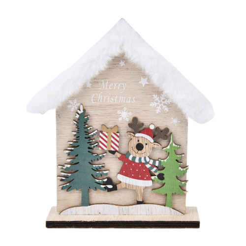Casita decorativa con diseño de reno navideño.