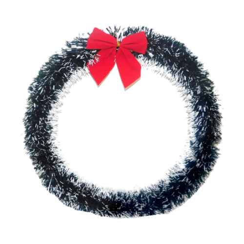 Corona de diseño delgado con moño incluido, ideal para puertas o paredes.