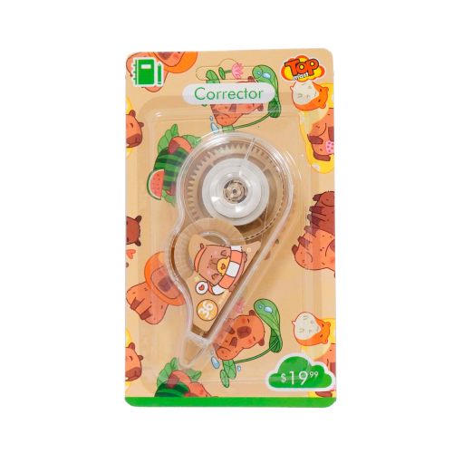Corrector líquido o en cinta con diseño de capibara para tus apuntes.