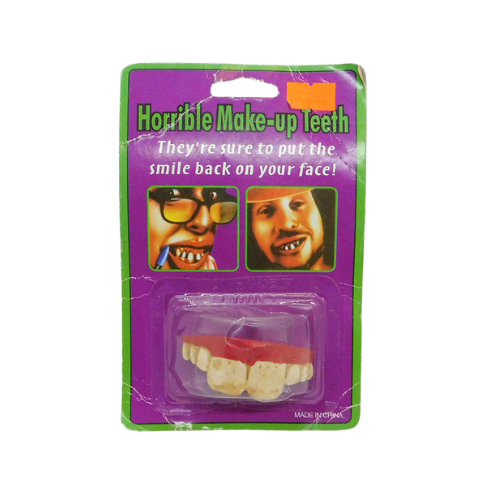 Accesorio de dientes postizos, esencial para disfraces de vampiro o monstruo.