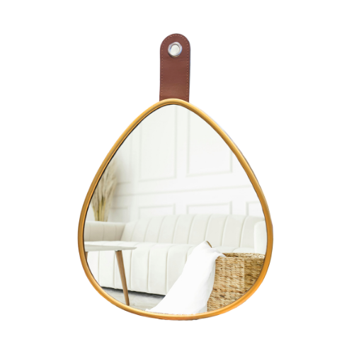 Espejo con forma orgánica y asa.