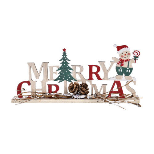 Adorno con frase navideña y figura de galleta.
