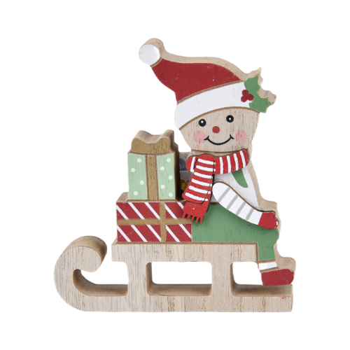 Muñeco de jengibre montado en trineo.