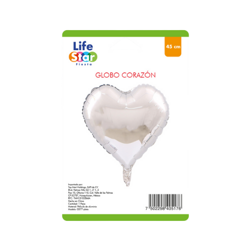 Globo en forma de corazón de 45 cm, ideal para arreglos decorativos.