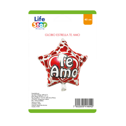 Globo en forma de estrella con mensaje “Te amo”, ideal para decoraciones temáticas.