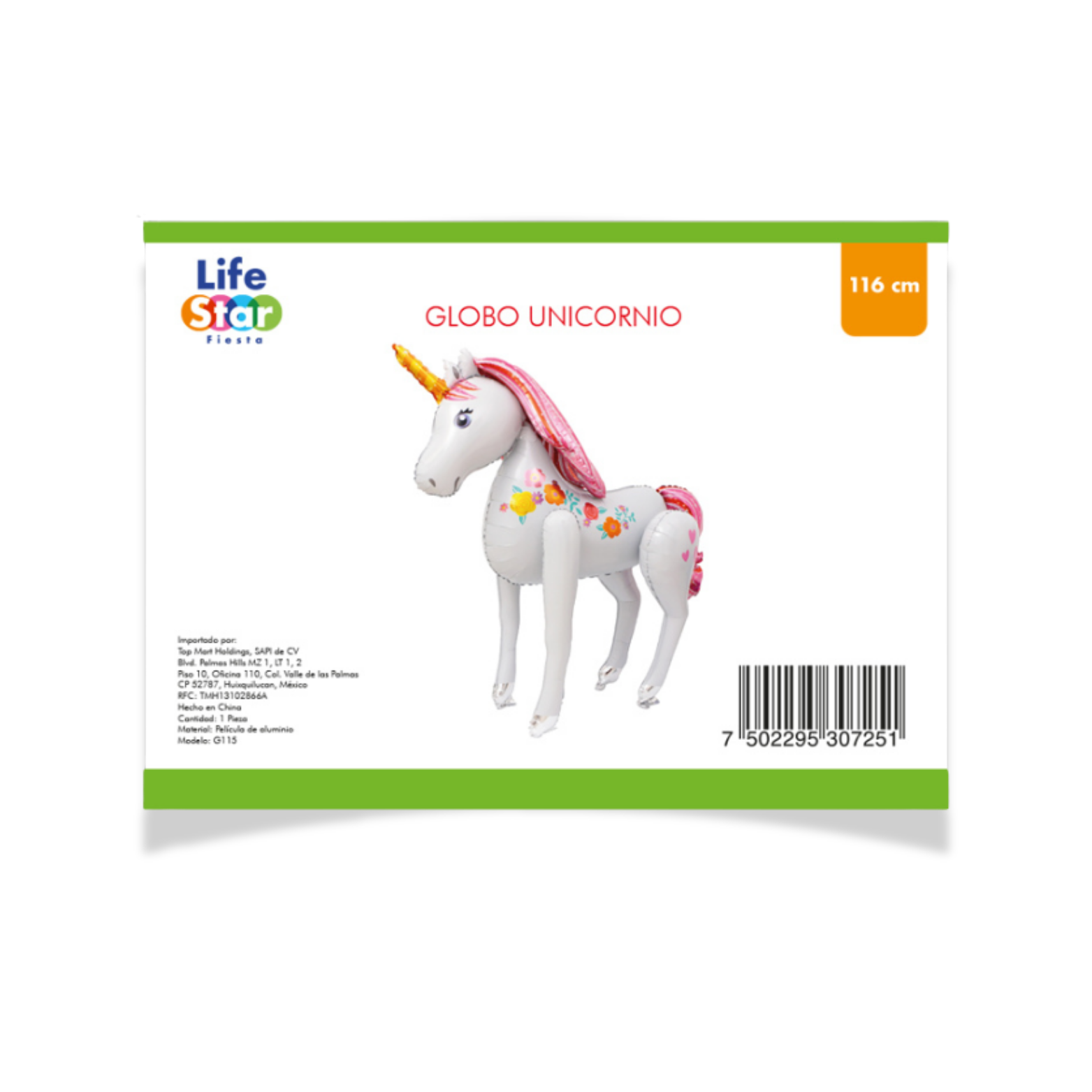 Globo unicornio, colorido y mágico, ideal para decorar cualquier espacio.