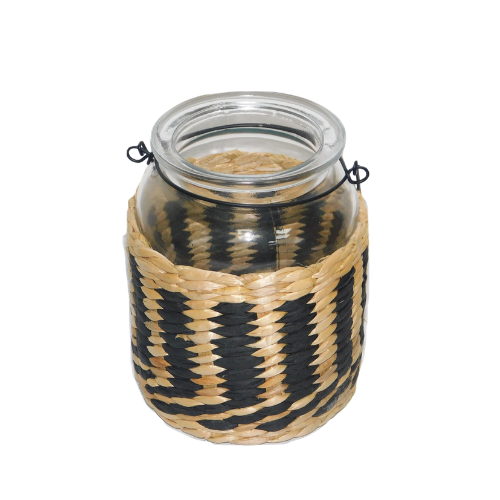 Jarrón decorativo con asa integrada.