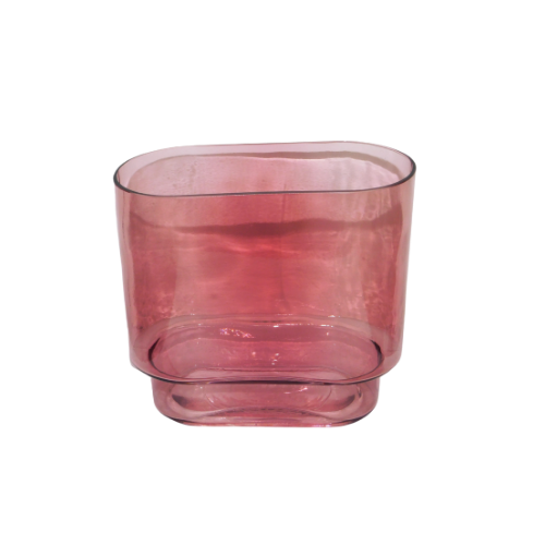 Jarrón de vidrio en tono rosa translúcido.