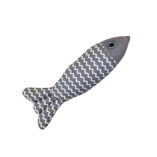 Juguete texturizado con forma de pez, perfecto para gatos curiosos.