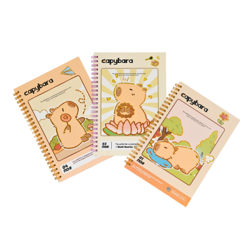 Cuaderno con portada de capibara, ideal para apuntes divertidos.