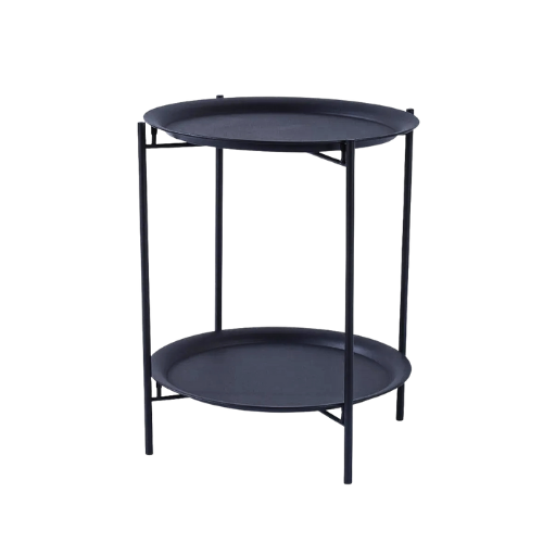 Mesa de centro negra con dos niveles, práctica y sofisticada.
