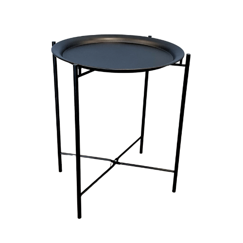 Mesa de centro mediana de metal negro, resistente y moderna.
