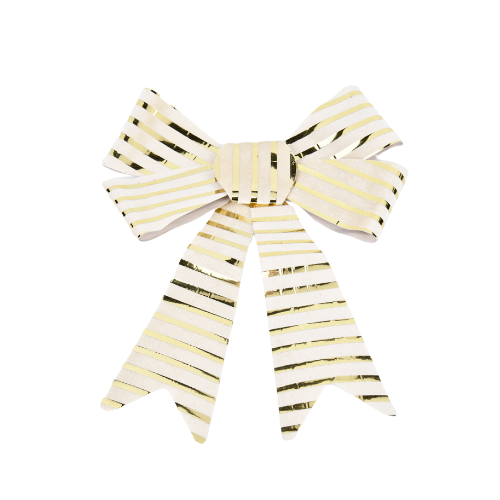 Accesorio decorativo tipo moño dorado.
