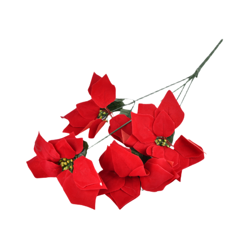 Flores artificiales con pétalos rojos intensos que no se marchitan.
