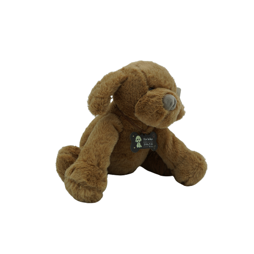 Peluche de perro suave y abrazable.
